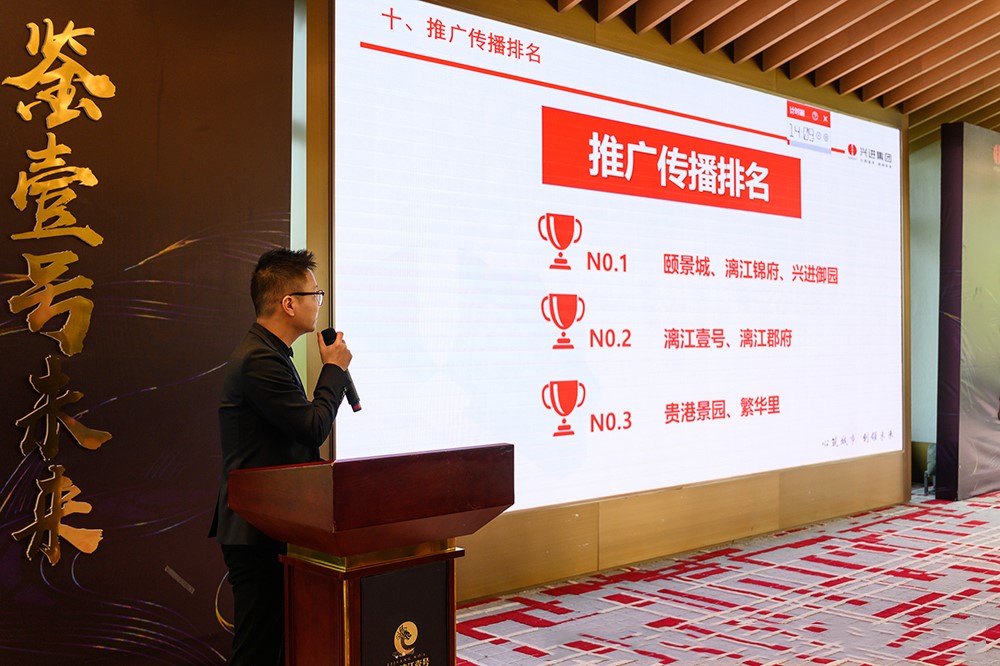 頒獎儀式結(jié)束后,興進集團助理總裁王昆先生對大會做出全面到位的總結(jié),他首先對全體營銷人員在一季度的辛苦付出,表示衷心的感謝。從對指標存有敬畏之心、營銷要整合資源、執(zhí)行力等方面闡述觀點,希望未來能與大家一起勇攀高峰,尋找一個又一個的可能。