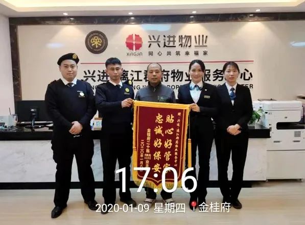 “我也沒想到他們來得那么快,當(dāng)時雨下得還挺大,清理完垃圾,他們身上都濕透了,看著心里很感動”, 業(yè)主秦先生送來錦旗時說到。一面錦旗,是業(yè)主對于興進物業(yè)人辛勤付出的感謝,更是業(yè)主對于興進物業(yè)工作的肯定與最大褒獎。