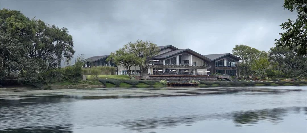 漓江·壹號(hào)塔山會(huì)館中分屋頂對(duì)應(yīng)桂林穿山,讓建設(shè)自然與人工互鑒互融,并在設(shè)計(jì)中以古典中式的"人"字懸山頂,讓獨(dú)具山水美學(xué)特色的建筑與金色相互交融,打造桂林繁華地帶的城市山水新名片。