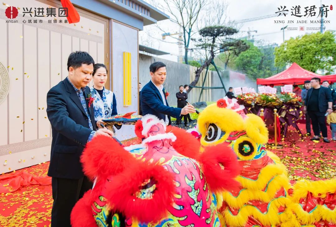 "千古華夏,龍獅為雄;風(fēng)雅珺府,聚氣藏風(fēng);祥獅點睛,承運如鵬。"在眾人的見證下,興進(jìn)珺府興進(jìn)集團(tuán)長沙城市總經(jīng)理管明及相關(guān)領(lǐng)導(dǎo)手持朱砂墨寶,為祥獅點睛,落筆之時,點睛禮成,禮樂奏響,興進(jìn)珺府營銷中心大門緩緩打開。