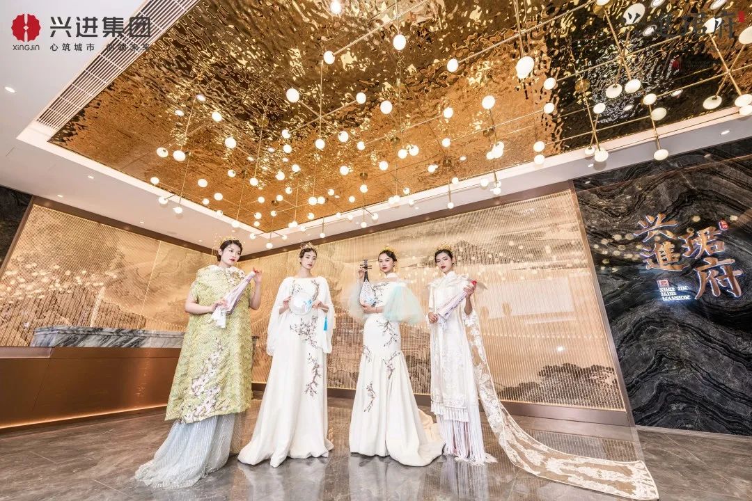 營銷中心內(nèi)沿襲傳統(tǒng)文化精髓,展示了一幅生動唯美的意境,精彩的表演應(yīng)接不暇:古琴琵琶演繹出中國風(fēng)流行音樂,琴聲裊裊,別有一番悠然韻律;經(jīng)典熱門國風(fēng)舞蹈,演員的曼妙身姿,再現(xiàn)了一個時代的芳華;更有身著漢服的小朋友,朗誦優(yōu)美的詩篇,瑯瑯書聲在營銷中心回蕩,獲得了一陣陣喝彩。