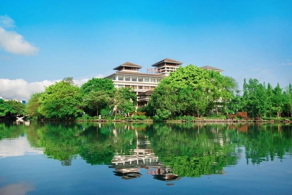 如今,榕湖飯店建筑因規(guī)劃升級正擴建施工,建成后的新飯店以盛唐建筑群落為主,三面臨水,左攬迎賓橋,右接榕溪橋,湖上法式凱旋門和中國的傳統(tǒng)吊橋完美結(jié)合在一起,像一位從盛唐穿越而來的偉人,岸然佇立于湖濱,守望榕湖。