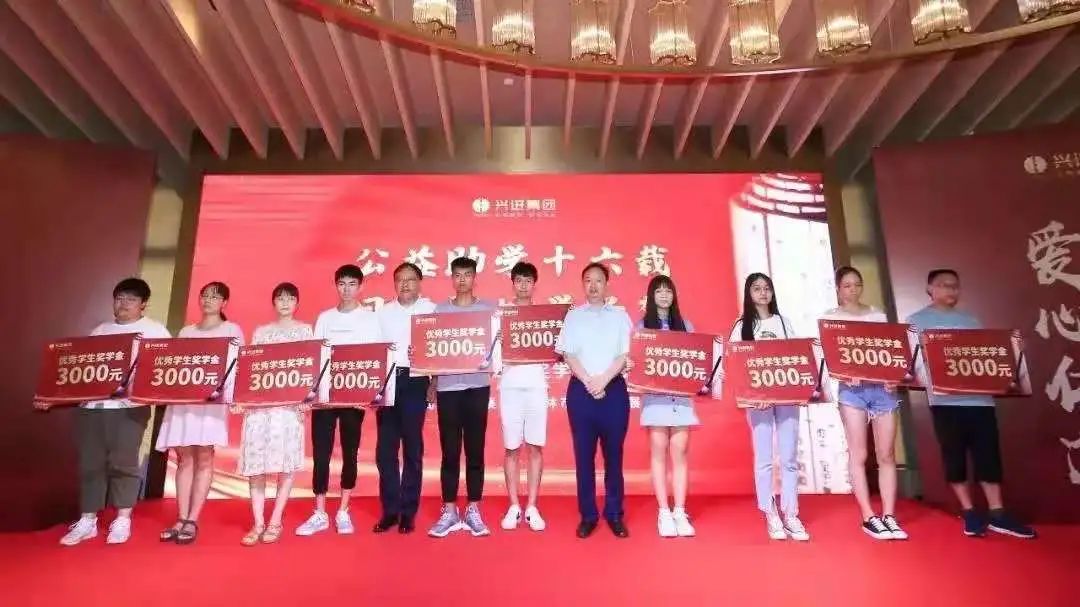 ◎ 興進(jìn)集團(tuán)董事長(zhǎng)羅欣為優(yōu)秀學(xué)子頒發(fā)獎(jiǎng)學(xué)金