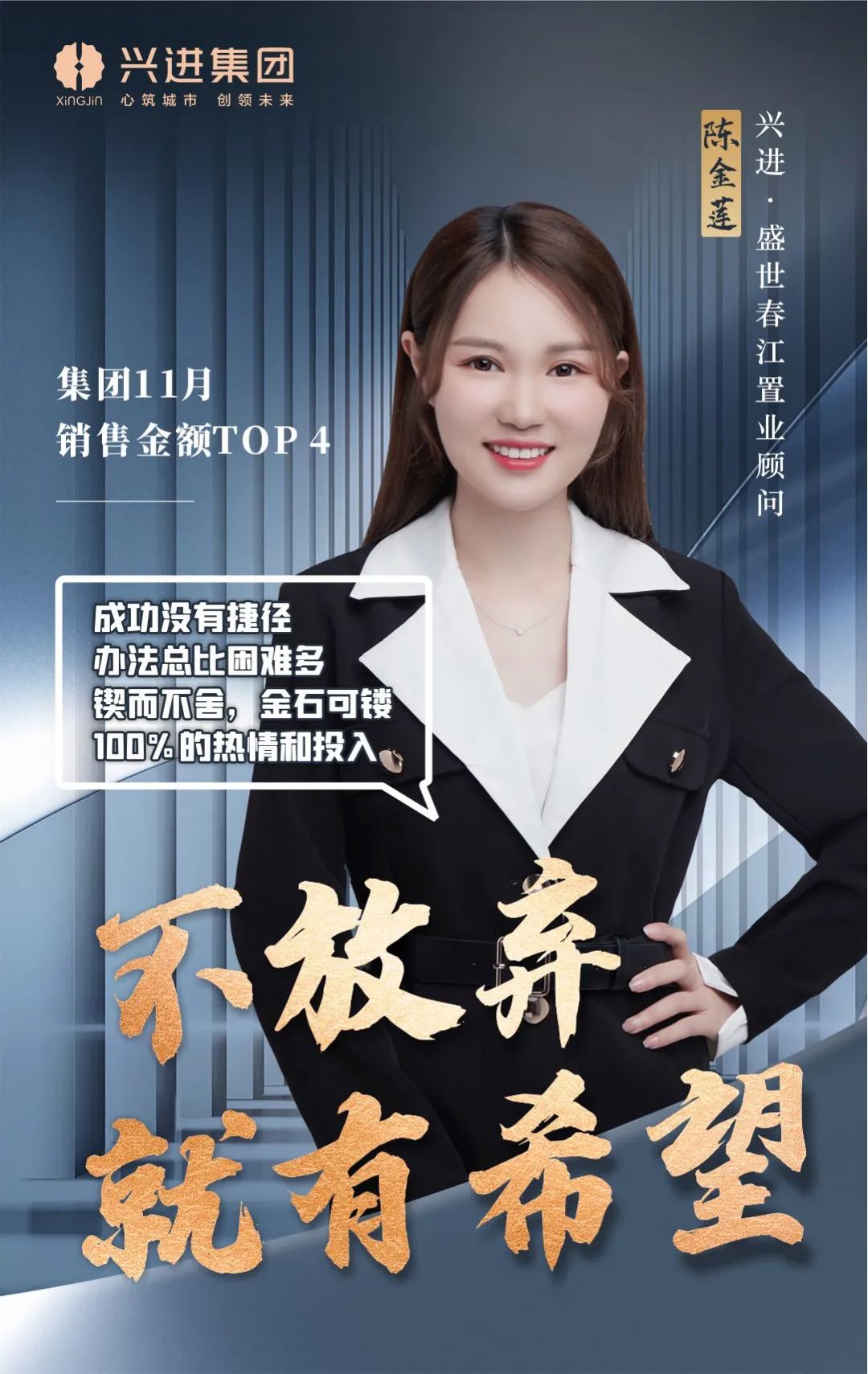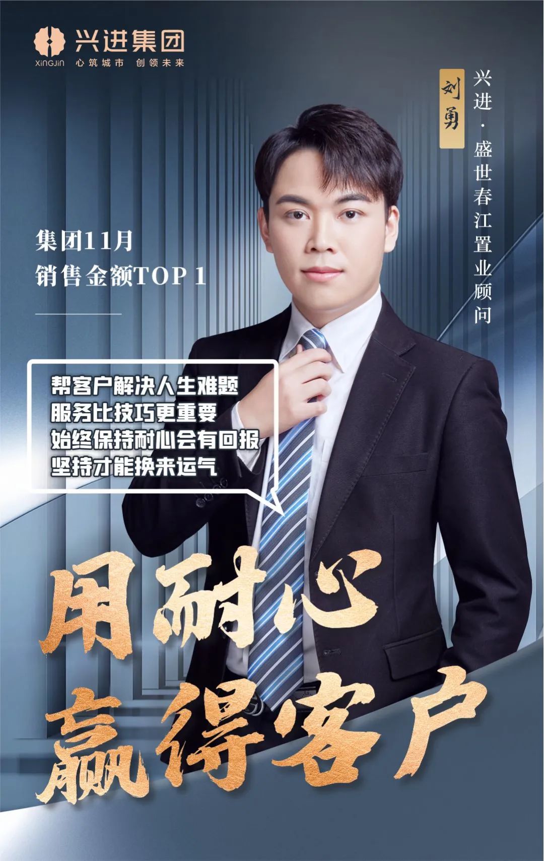 興進(jìn)·盛世春江營銷團(tuán)隊(duì),11月獲得集團(tuán)優(yōu)秀團(tuán)隊(duì)殊榮,集團(tuán)銷售金額前5名均為團(tuán)隊(duì)成員,他們用專業(yè)與溫情,成為客戶的美好生活規(guī)劃師。
