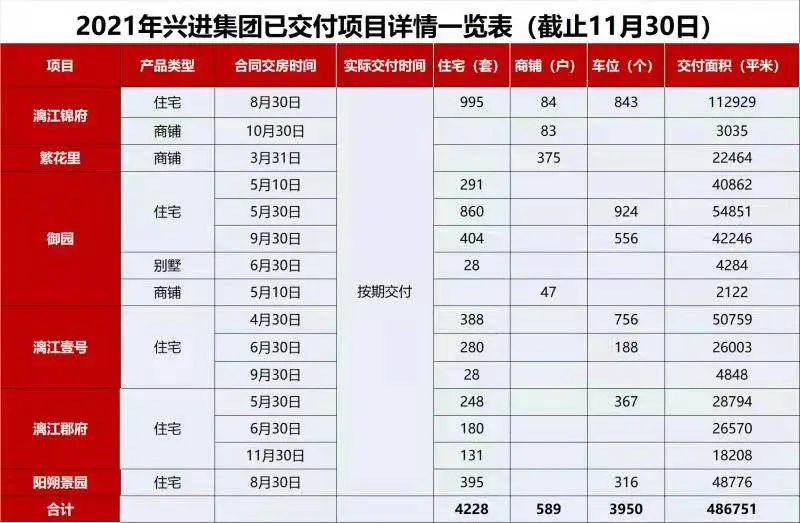 截止2021年11月30日,旗下多個(gè)精品項(xiàng)目在今年陸續(xù)交付,興進(jìn)以實(shí)力兌現(xiàn)承諾,贏得市場(chǎng)和業(yè)主的一致認(rèn)可。