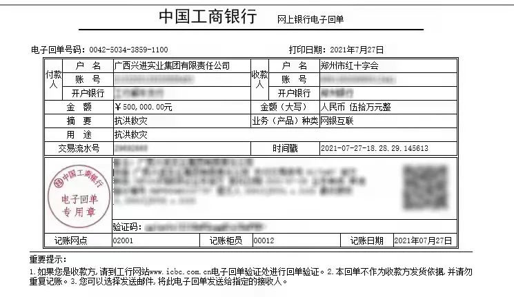 2021年7月27日,興進(jìn)集團(tuán)通過(guò)鄭州市紅十字會(huì)向?yàn)?zāi)區(qū)捐贈(zèng)50萬(wàn)元善款,以實(shí)際行動(dòng)為受災(zāi)群眾、抗洪一線的救援人員提供有力支持。