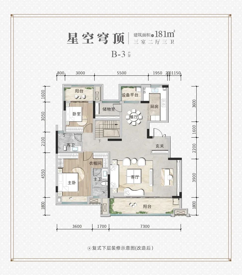 【星空穹頂】戶型帶給我們的,是空間層次與功能表現(xiàn)的迭代,也是生活全新享受的開始。讓生活與期待共生,將調(diào)動(dòng)情緒與情感滿足的細(xì)節(jié)點(diǎn)綴其中,鏈接起心中最本真的生活樂趣。