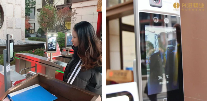 這一年,園區(qū)門崗及單元大廳進(jìn)出口增設(shè)了測(cè)溫點(diǎn),仔細(xì)排查、登記,加強(qiáng)人員和車輛進(jìn)出管控。為降低測(cè)溫直接接觸風(fēng)險(xiǎn),提高園區(qū)防疫防控工作質(zhì)量,興進(jìn)服務(wù)集團(tuán)逐漸在漓江郡府、漓江壹號(hào)、興進(jìn)廣場(chǎng)等多個(gè)項(xiàng)目安裝了全自動(dòng)紅外測(cè)溫儀,為進(jìn)入園區(qū)人員全覆蓋測(cè)溫的準(zhǔn)確性和通過率提供了有力保障,從而做到檢測(cè)防控"不漏一人"。