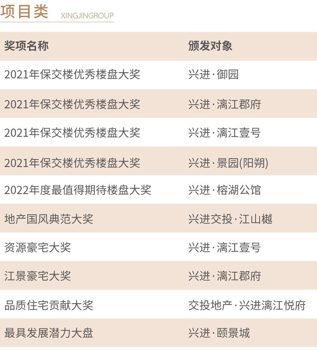 興進(jìn)集團(tuán)憑借卓越的產(chǎn)品實(shí)力和交付力、高品質(zhì)的物業(yè)服務(wù)以及強(qiáng)烈的社會(huì)責(zé)任感等綜合實(shí)力,榮獲 "地產(chǎn)行業(yè)貢獻(xiàn)企業(yè)大獎(jiǎng)"、"金牌物業(yè)服務(wù)示范企業(yè)"、"2021保交樓優(yōu)秀樓盤"獎(jiǎng)等17項(xiàng)實(shí)力大獎(jiǎng)。這是業(yè)界對(duì)興進(jìn)集團(tuán)的高度認(rèn)可,也是對(duì)企業(yè)為城市煥新貢獻(xiàn)力量的嘉獎(jiǎng)。