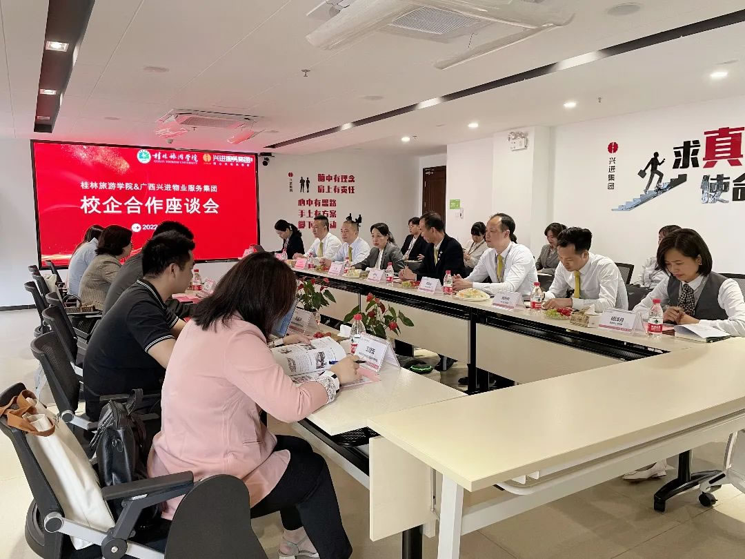 為進一步深化校企合作,促進集團服務型人才引進,近日,興進服務集團舉辦校企合作座談會,對落實"訪企拓崗"專項行動,積極推進畢業(yè)生"留桂就業(yè)計劃"進行深度交流探討。桂林旅游學院學校黨委副書記林業(yè)江、酒店管理學院黨總支書記麻名佳、廣西興進集團黨支部書記、副總裁羅捷,廣西興進服務集團總經(jīng)理王永忠等一同參與此次座談會。