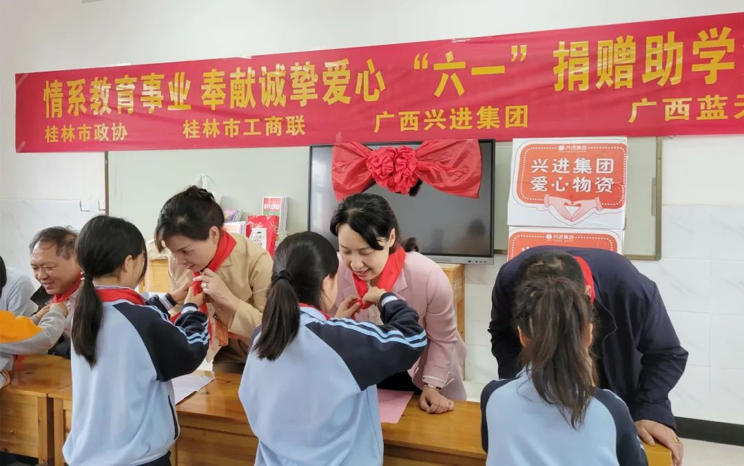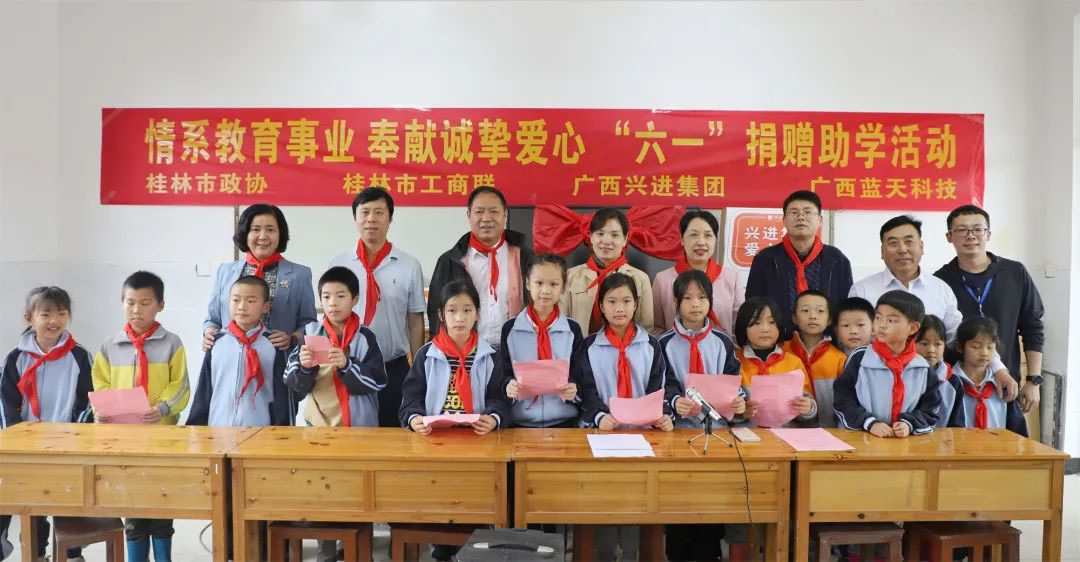 連續(xù)十一年開展"三元午餐"愛心活動,為白嶺小學捐資捐物,改善山區(qū)孩子學習環(huán)境;2019、2020年,先后向桂林市教育發(fā)展基金會捐款150萬,用于支持桂林教育事業(yè)發(fā)展;多年來,先后在桂林中學設立"興進獎""國強獎"等獎學金,獎勵優(yōu)秀學子,助力圓夢大學……
