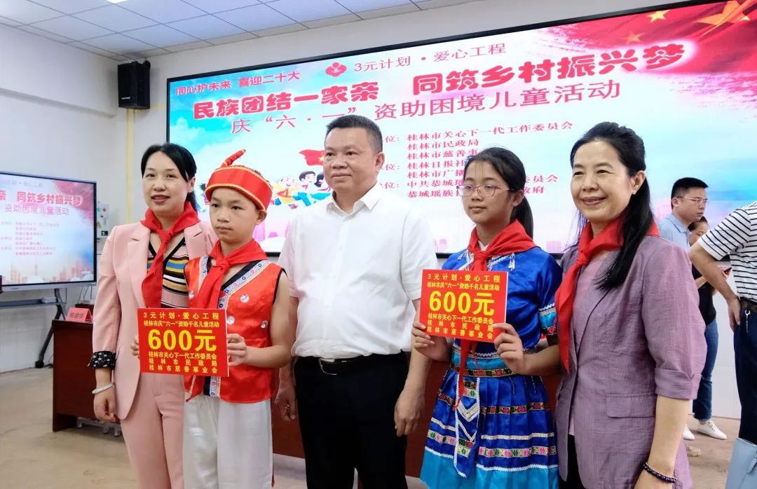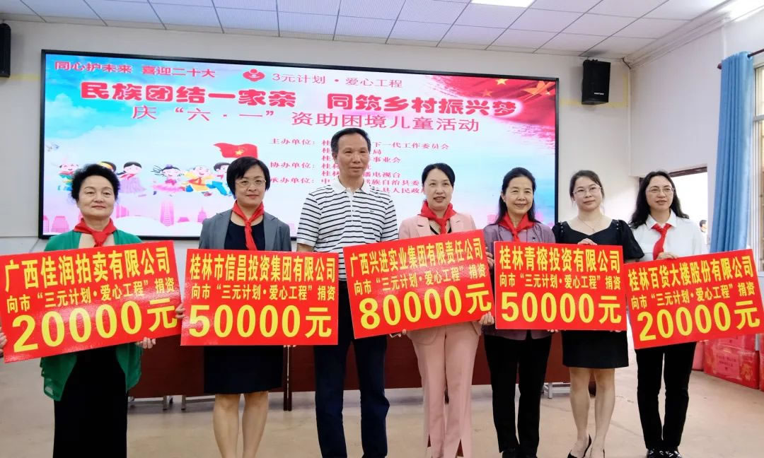 兒童是祖國的花朵,是社會的未來,是民族的希望。為進一步關愛困境兒童,讓他們感受到社會的關懷與溫暖,5月31日,桂林市慶"六·一""3元計劃·愛心工程"資助困境兒童活動如期舉行,興進集團副總裁羅捷女士代表集團出席捐贈儀式。