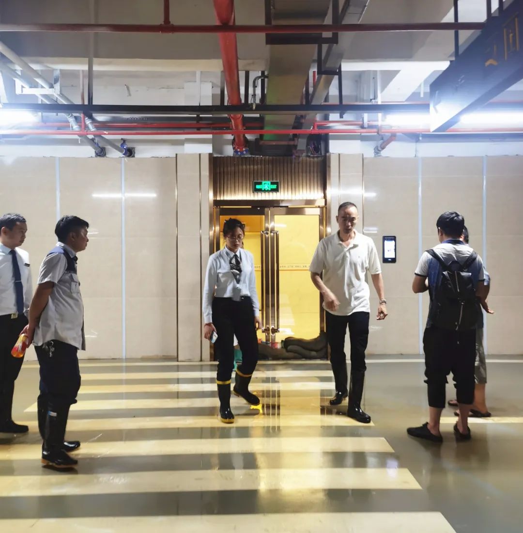 此次暴雨,集團(tuán)領(lǐng)導(dǎo)班子高度重視,并到達(dá)現(xiàn)場(chǎng)指導(dǎo)工作。各項(xiàng)目負(fù)責(zé)人冒著雷暴天氣緊急趕往小區(qū)指揮處理防洪工作,并根據(jù)現(xiàn)場(chǎng)水位情況調(diào)整防洪措施。