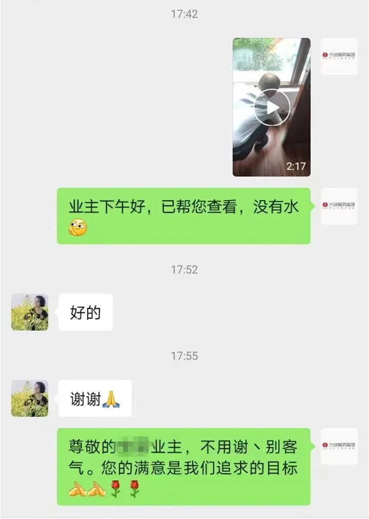 漓江郡府業(yè)主因去外地出差,特囑托物業(yè)管家照看。在暴雨來(lái)臨時(shí),物業(yè)管家及時(shí)為業(yè)主檢查門窗是否關(guān)好,窗戶陽(yáng)臺(tái)是否有飄雨等情況,并發(fā)送檢查視頻讓業(yè)主了解到家中的實(shí)時(shí)信息,業(yè)主非常安心和滿意。急業(yè)主之所急,想在前,行動(dòng)為先,業(yè)主住的安心是興進(jìn)物業(yè)的不懈追求。