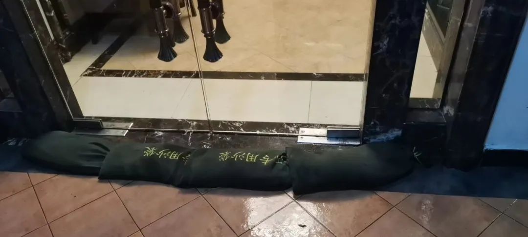 6月5日凌晨,興進(jìn)·上譽(yù)物業(yè)人員緊急防洪排查工作,物業(yè)人員對(duì)各樓層進(jìn)行水位查看、地下水泵使用情況巡檢,利用防洪沙袋、擋水板封堵的方式進(jìn)行防洪。