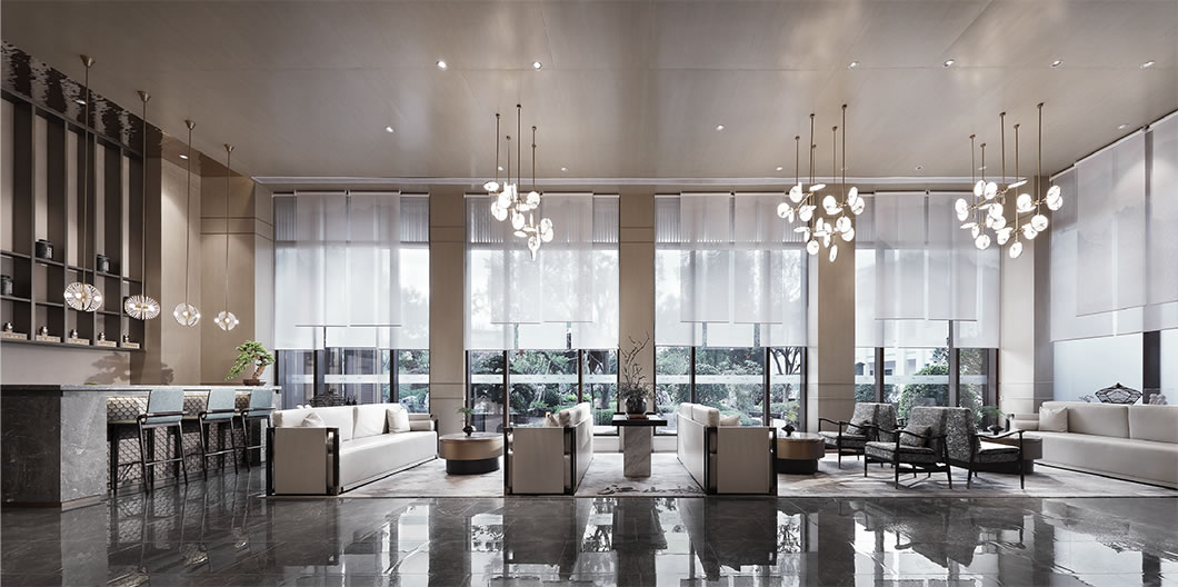 以古典和現(xiàn)代結(jié)合的設(shè)計手法、營造出別致的空間品味每一處風物細水中的生靈氣韻,和鳴空間的起承轉(zhuǎn)合。