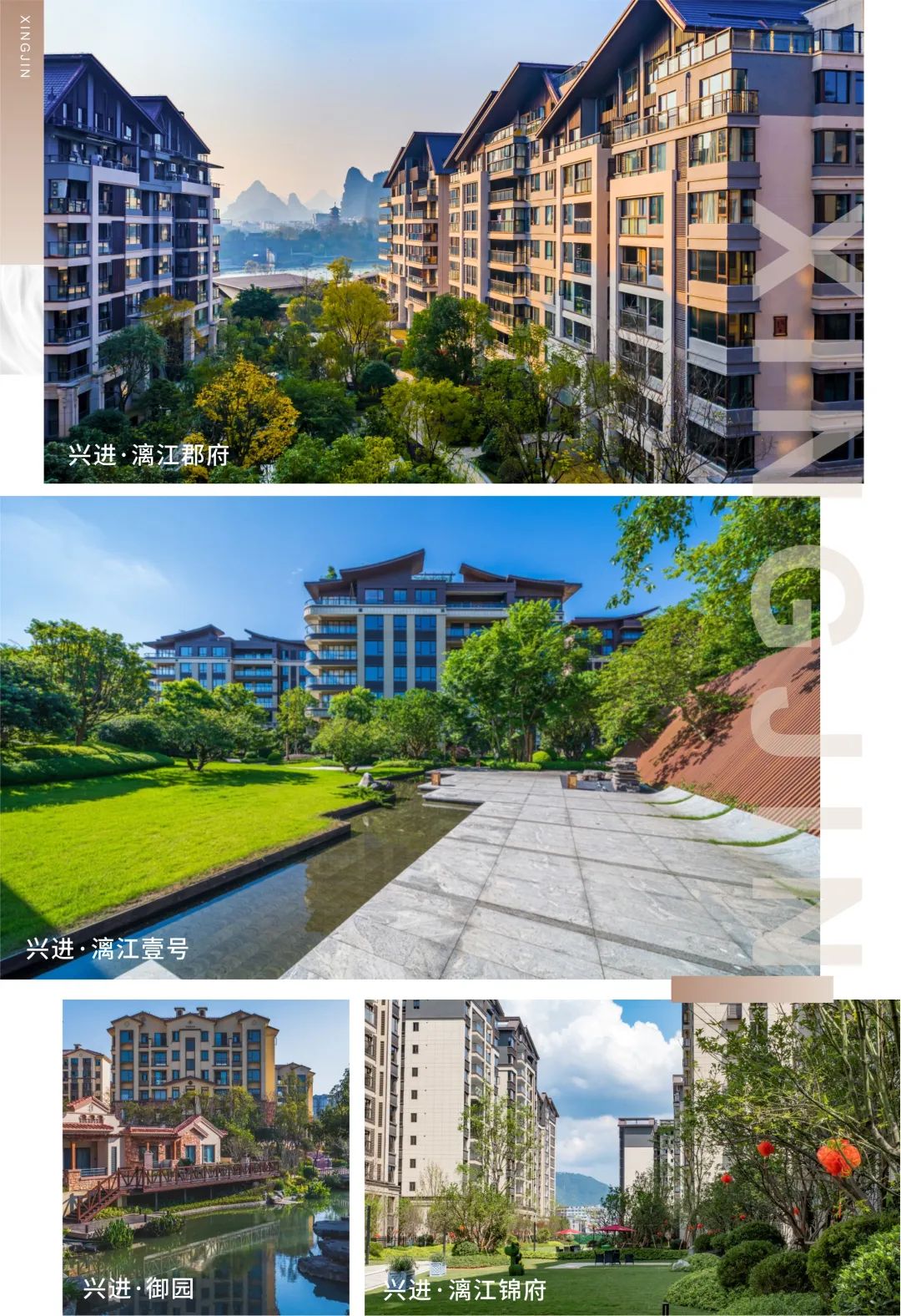 交付項目包括興進(jìn)·御園、興進(jìn)·漓江郡府、興進(jìn)·漓江壹號、興進(jìn)·景園(陽朔)、興進(jìn)·漓江錦府、繁花里,在廣西本土房企中名列前茅。