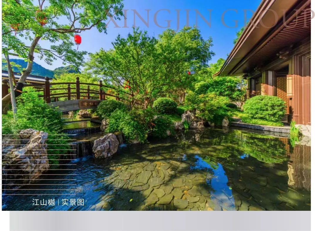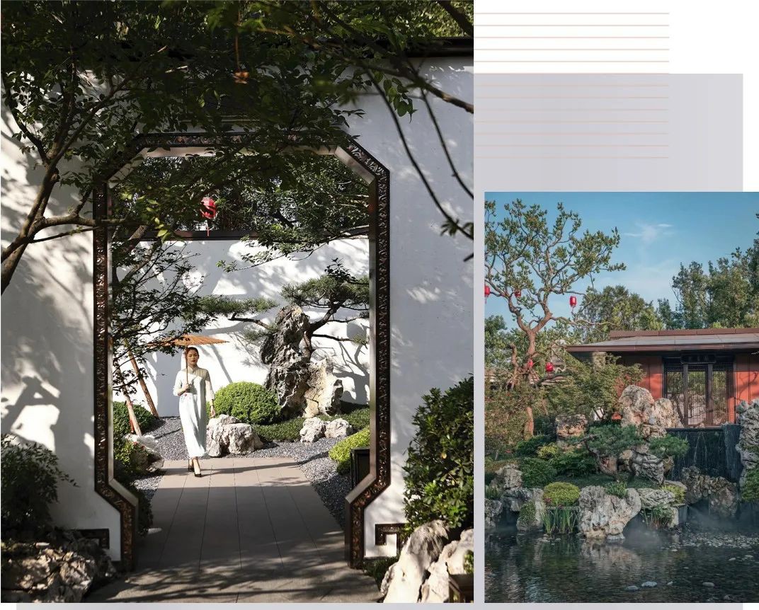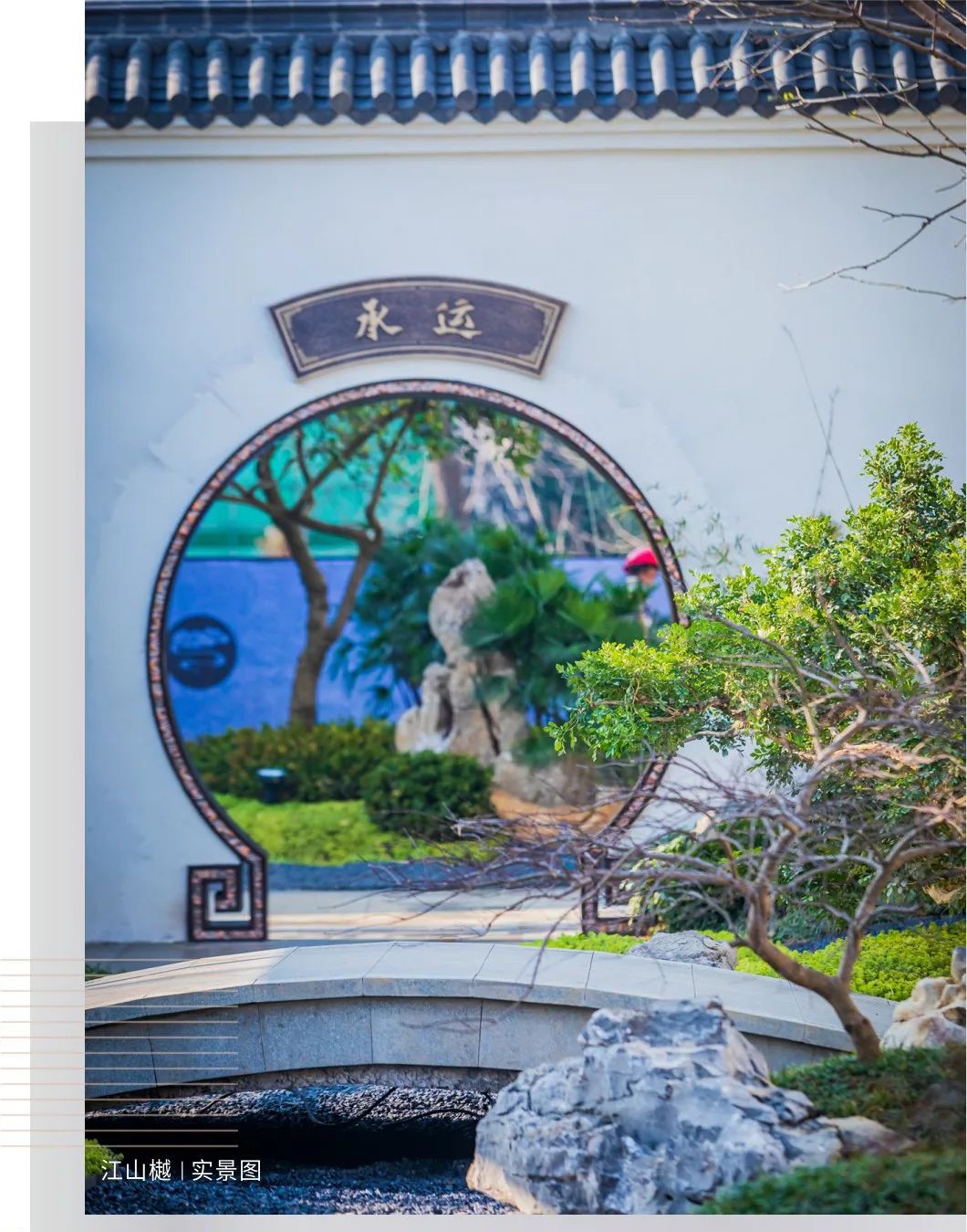 江山樾引江山入園,不僅結(jié)合當?shù)氐淖匀画h(huán)境進行量身定制,而且園林中的林、木、水、石都十分講究,仿佛隨時隨地都置身山水畫卷中。