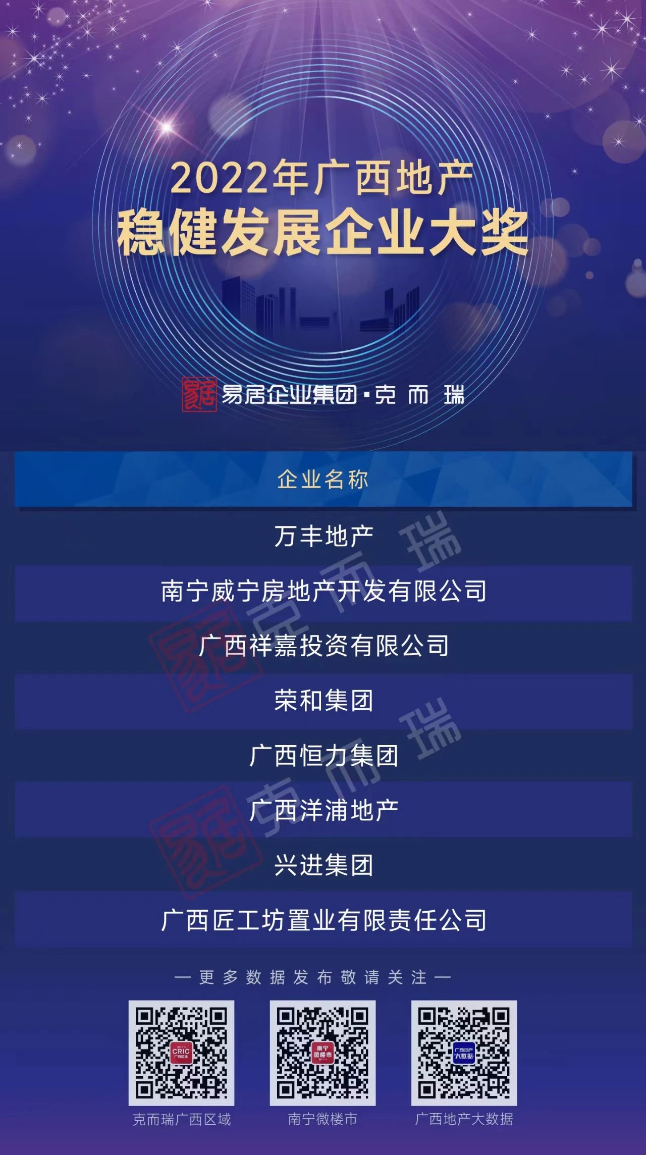 興進(jìn)集團(tuán)憑借穩(wěn)健經(jīng)營(yíng)和市場(chǎng)的高度認(rèn)可,榮獲廣西地產(chǎn)穩(wěn)健發(fā)展企業(yè)大獎(jiǎng),同時(shí)入圍"2022年廣西房地產(chǎn)本土房企權(quán)益銷售金額"TOP20榜單,位列第三;興進(jìn)·漓江郡府榮獲"2022年廣西地產(chǎn)各市縣標(biāo)桿項(xiàng)目"獎(jiǎng)項(xiàng)。
