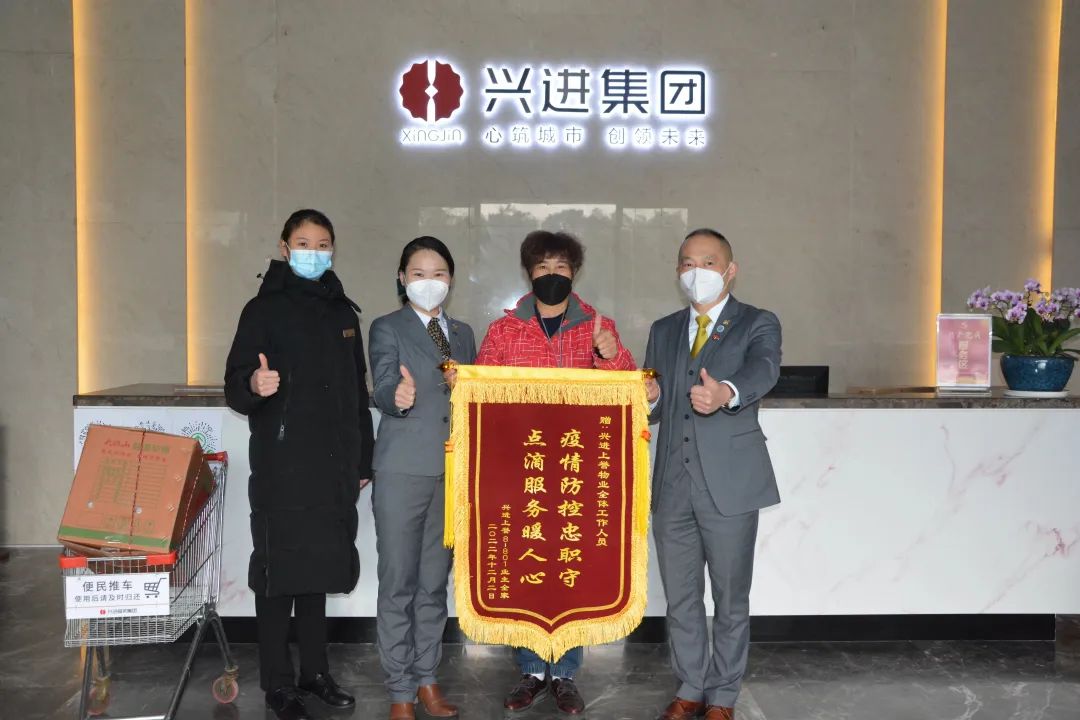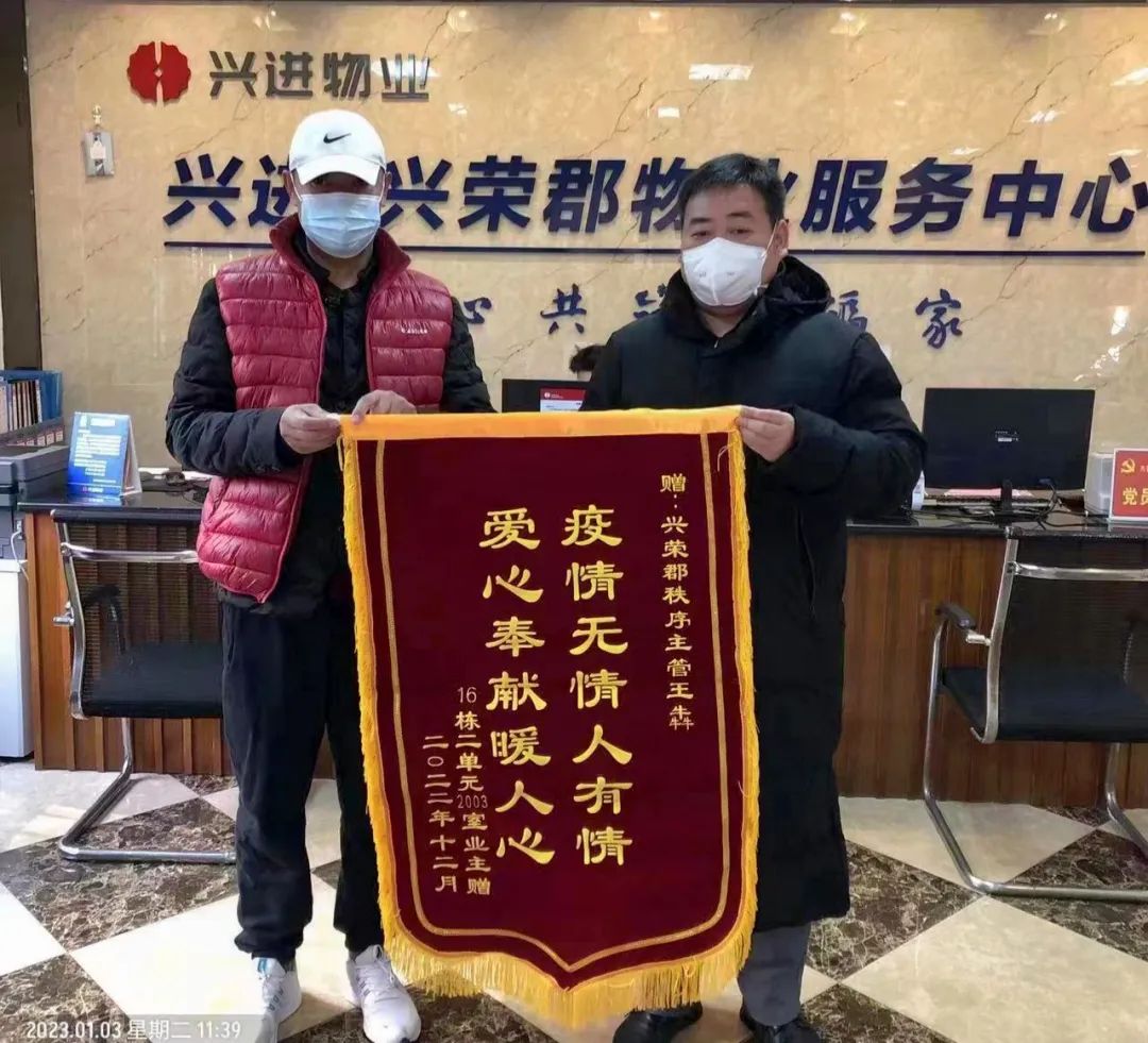 在2022年底,興進(jìn)業(yè)主邵先生因?yàn)樵谕獾毓ぷ?,父母年紀(jì)大了,在家生病而無(wú)人照顧。接到業(yè)主求助后,興進(jìn)物業(yè)王主管積極地幫助老人送物資送藥,像家人一樣照顧他的父母,邵先生工作結(jié)束回來(lái)后,看到興進(jìn)物業(yè)人的盡心盡力的付出,十分感動(dòng),特意制作了一面錦旗表達(dá)感謝。
