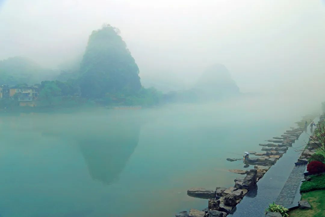 秋北京、夜上海、霧重慶、雨桂林,二月煙雨,讓漓江多了一份縹緲的美感,清風(fēng)拂過,云霧聚了又散、散了又聚,宛若一幅流動(dòng)的水墨畫,令人嘆為觀止。